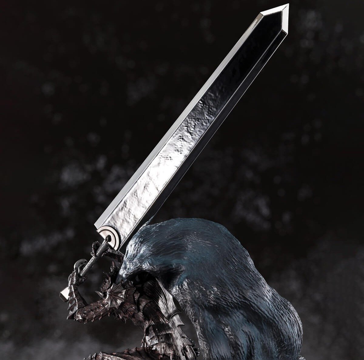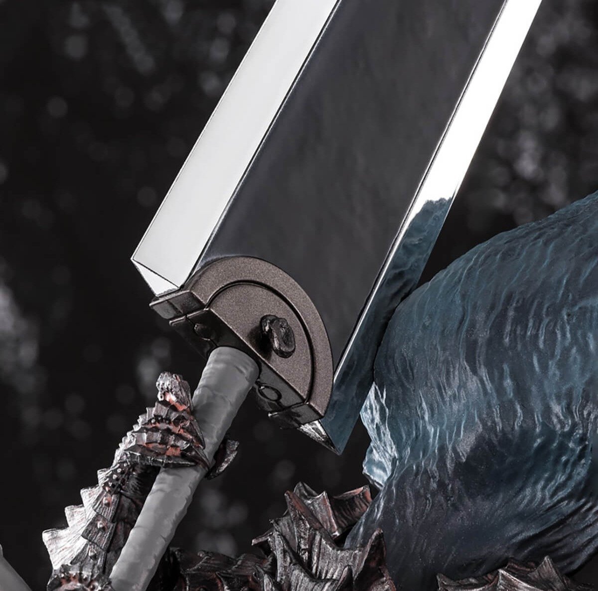 La Dragon Slayer, la gigantesca espada de Guts, muestra texturas realistas y un tamaño imponente acorde al personaje.