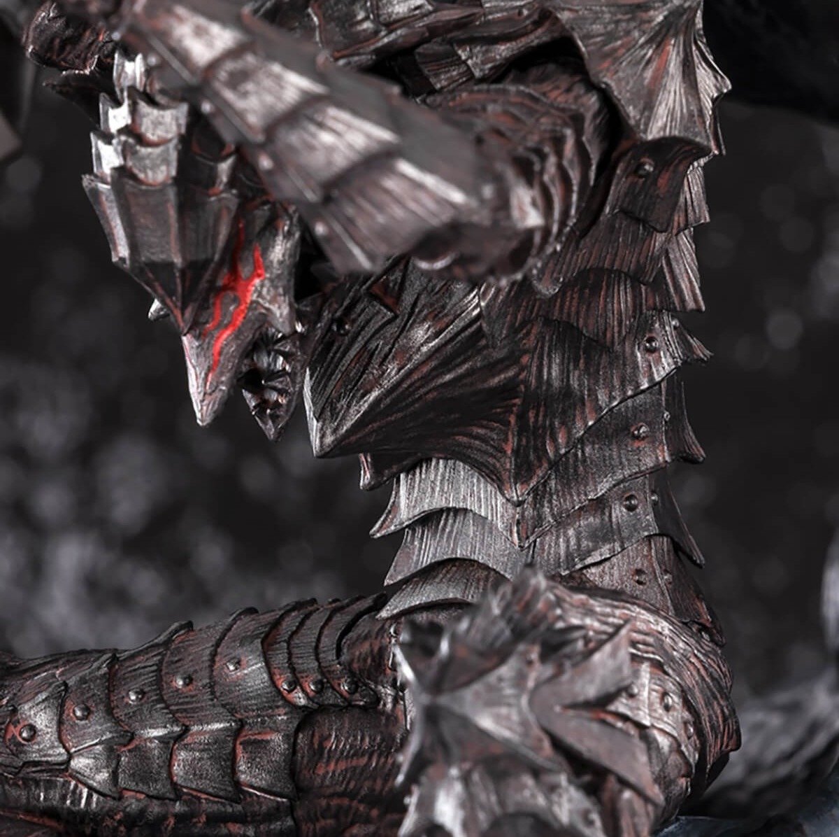 El casco demoníaco de la Berserker Armor está recreado con gran precisión, resaltando su diseño aterrador.