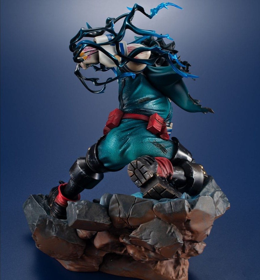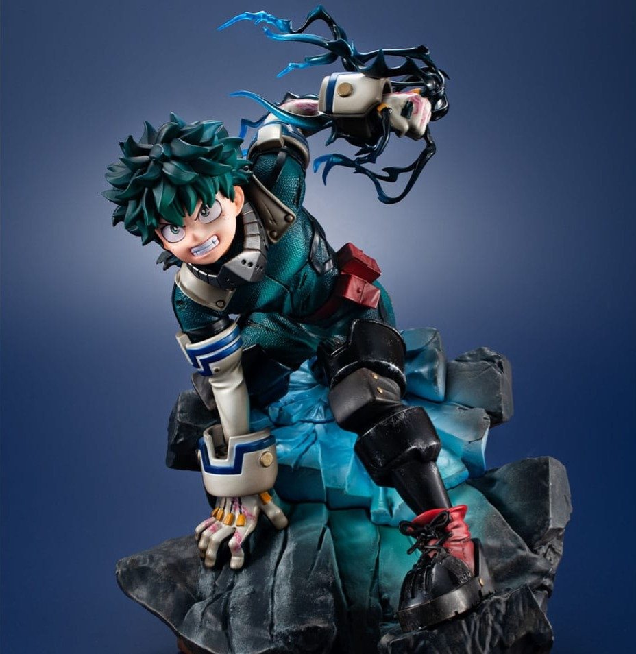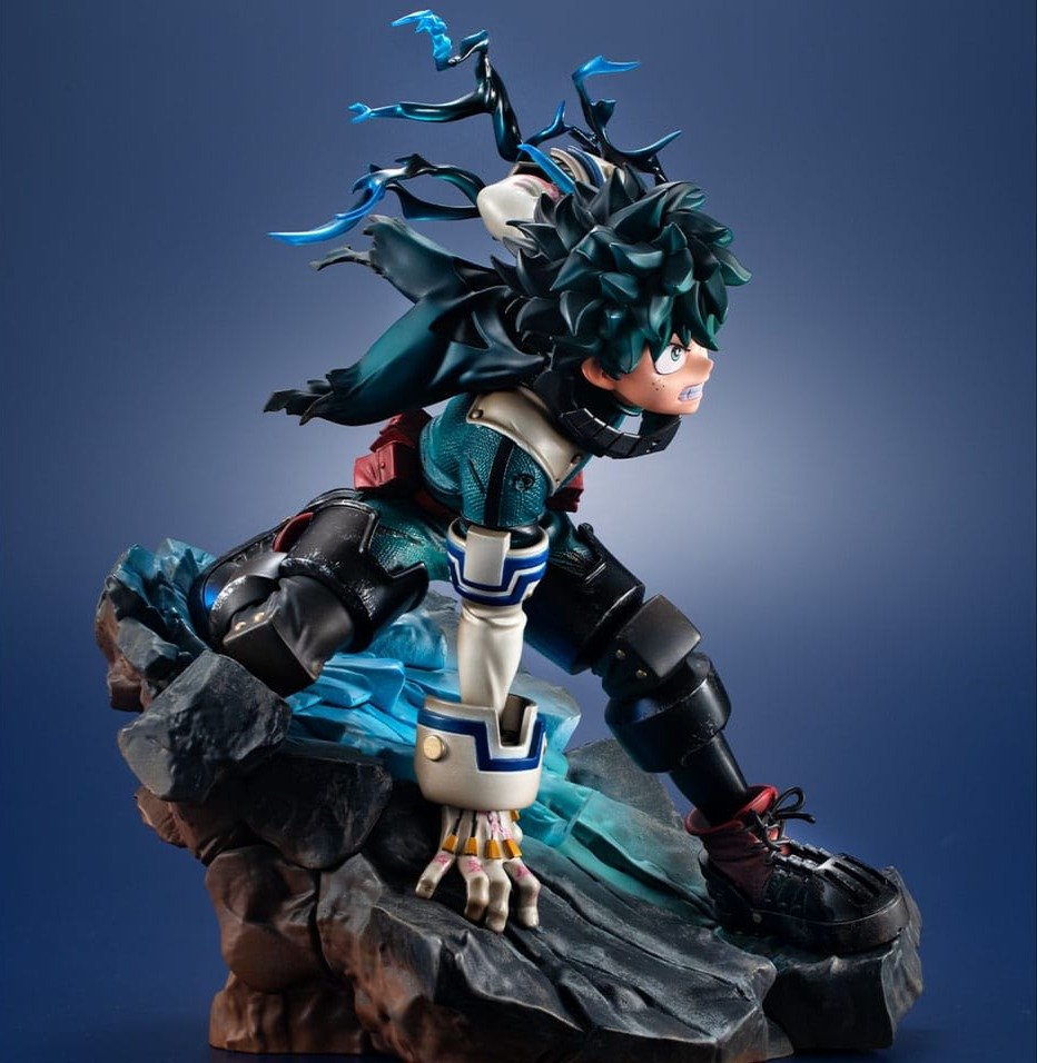 - Escala detallada y fiel: La figura de Izuku Midoriya está esculpida con un nivel de detalle increíble, manteniendo la esencia del personaje tal y como aparece en el anime. Su icónica vestimenta y los detalles en su expresión facial muestran su determinación y valentía.