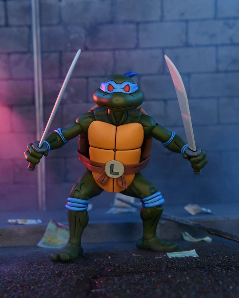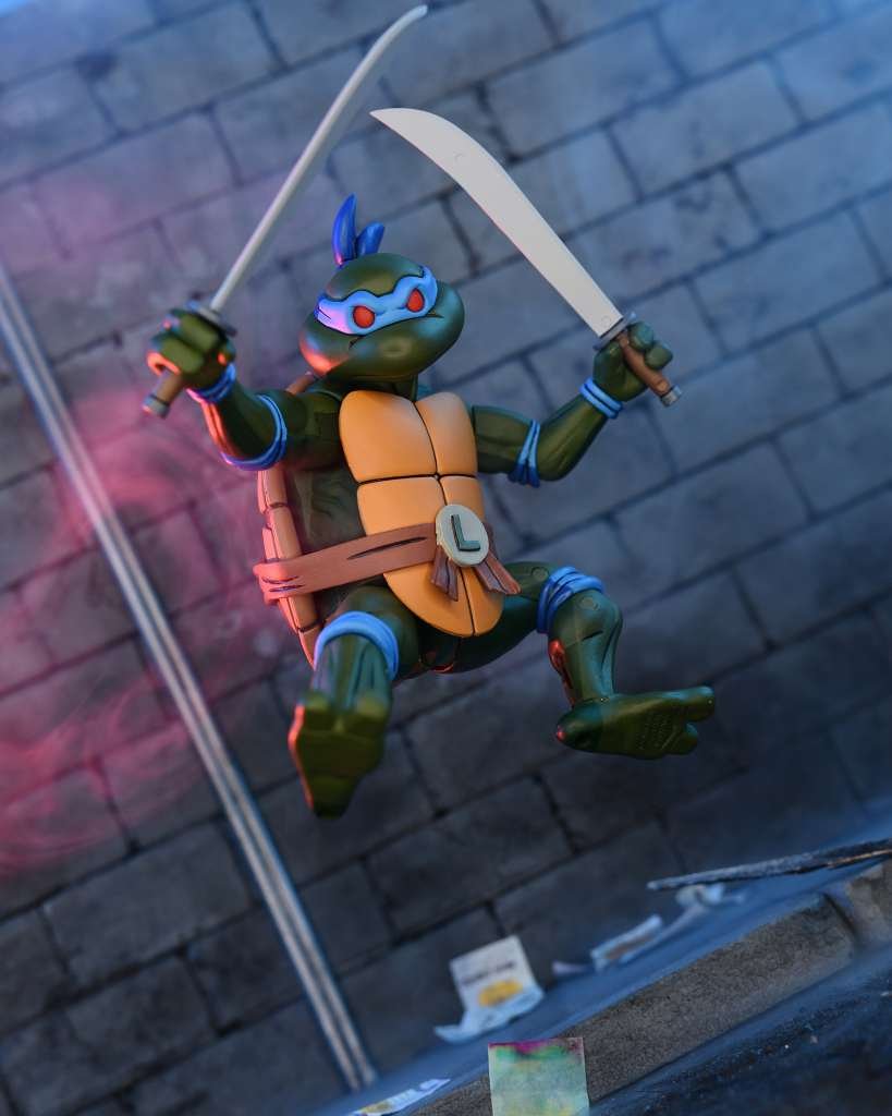 Leonardo es el símbolo del liderazgo y la disciplina dentro del equipo TMNT, y esta figura transmite perfectamente su personalidad: