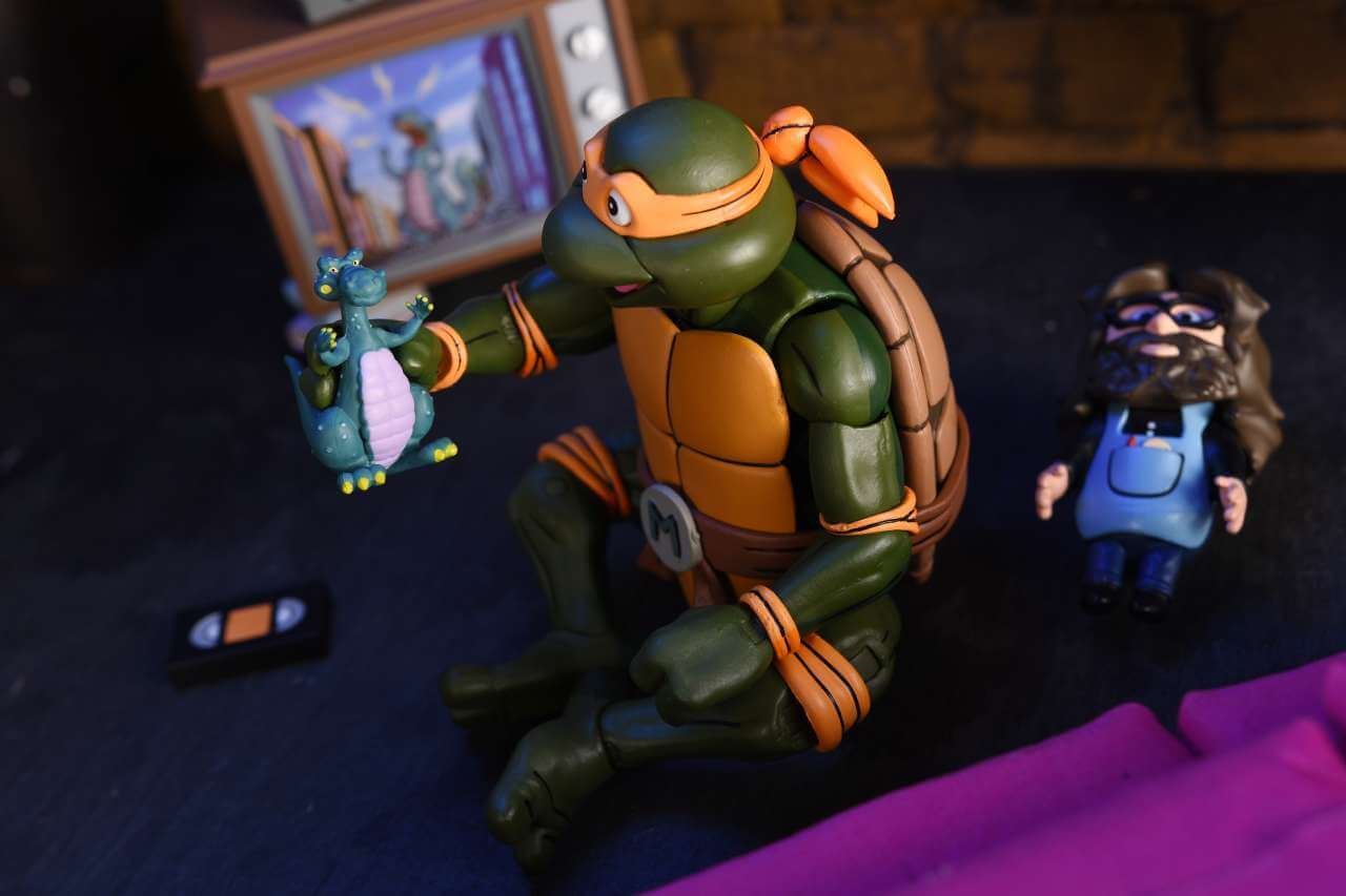 Es la pieza ideal para acompañar a Leonardo, Raphael y Donatello en la colección Teenage Mutant Ninja Turtles Cartoon VHS.